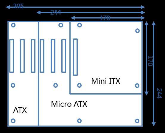 工業(yè)主板,可直接安裝在設(shè)備內(nèi)使用,如安裝在自動(dòng)售貨機(jī)內(nèi)實(shí)現(xiàn)自動(dòng)售貨;可搭配傳統(tǒng)4U工控機(jī)箱使用,常用于機(jī)器視覺、工業(yè)自動(dòng)化等領(lǐng)域;或是安裝在嵌入式主機(jī)內(nèi),適用于VTM、地鐵閘機(jī)、自助終端、醫(yī)療設(shè)備等領(lǐng)域??梢?,工業(yè)主板尺寸滿足多樣化,以適應(yīng)不同需求。工業(yè)主板可分為ATX、Micro ATX、Mini ITX,具體尺寸如圖所示:
