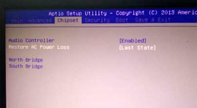 2、按右方向鍵選擇“Chipset”,如下圖: